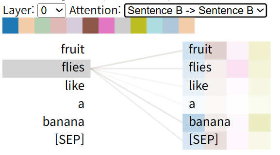 "Fruit flies likes a banana" 의 sentense의 예는 다음과 같음: